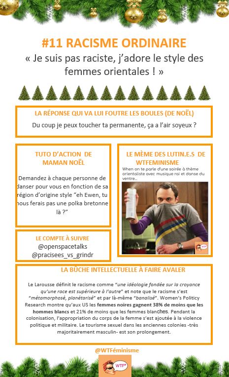 Pour résumer: Noel n'est pas féministe, c'est une fête capitaliste, c'est un symbole de la non laïcité et de l'islamophobie et surtout c'est une fête d'oppression de classisme.